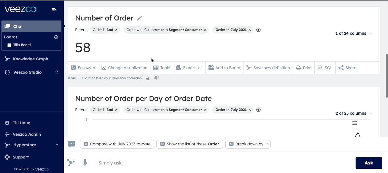 In our commitment to deliver the best possible self-serve experience, we have added our point-and-click editing feature in more places. It allows for modifications to an answer directly by clicking on the relevant filters such as entities, booleans, dates, and more.