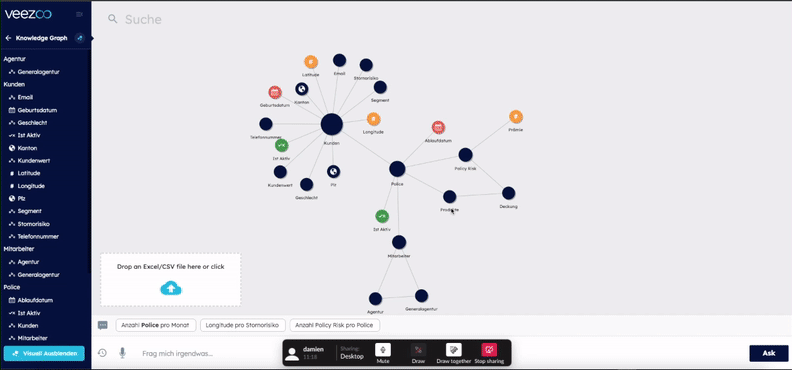With this new Knowledge Graph extension feature, you can just drop a file and Veezoo will magically connect it to the right concepts you already have in your Knowledge Graph. Now just ask away freely, like: “show me the number of customers vs population per zip code”.