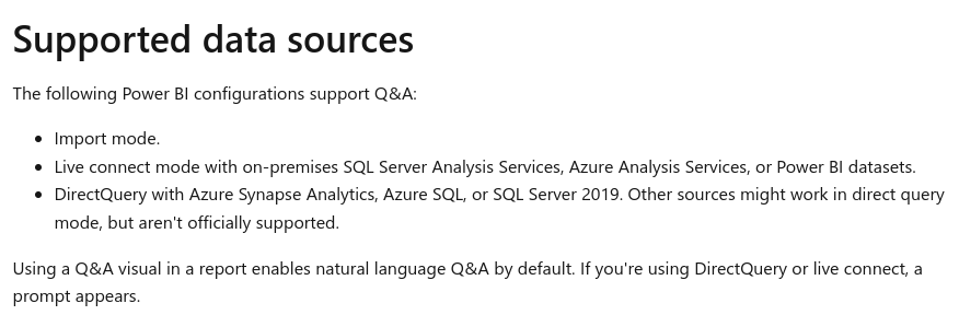 Power BI Copilot requires data to be loaded into its environment, which means you pay for the capacity. While DirectQuery is supported, performance can suffer with large datasets, and it is limited to a limited set of data sources: Azure Synapse Analytics, Azure SQL, or SQL Server 2019.